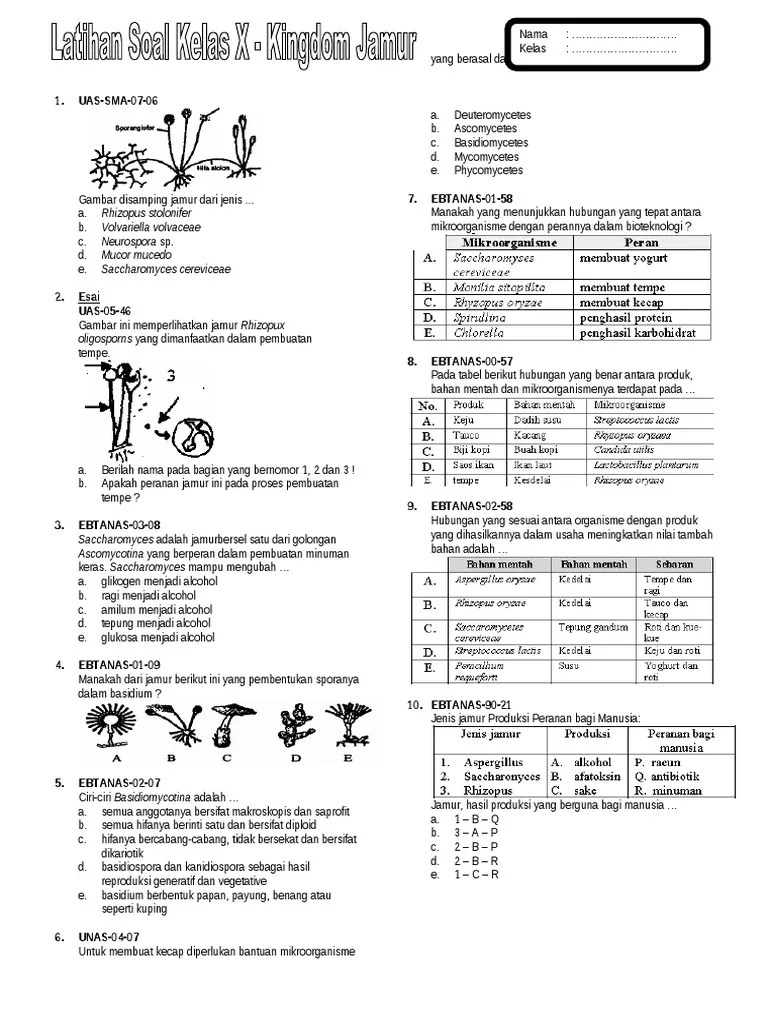 Kumpulan materi pelajaran, latihan soal dan tips belajar biologi kelas 10 sma. Artikel ini membahas materi biologi kelas 10 yaitu klasifikasi fungi. Sebutkan peranan kingdom fungi bagi kehidupan. Contoh soal pg biologi peminatan kelas x semester 2 k13 tentang jamur (fungi). Berikut ini merupakan gejala yang bukan disebabkan c. Tidak hanya klasifikasi, terdapat peranannya bagi kehidupan kita . Modul biologi kelas x kd 3.7 jamur. Berikut ini kumpulan soal biologi tentang jamur (soal a) 1. Apabila hasil soal evaluasi mencapai 80% benar maka kalian dapat melanjutkan kegiatan belajar selanjutnya. Soal tantangan karena mengonsumsi jamur . Soal biologi kelas 10 tentang jamur (fungi) & kunci jawaban a. Cabang ilmu biologi yang membahas tentang jamur adalah. Jamur yang hidup di air biasanya bersifat parasit atau saprofit, dan kebanyakan dari kelas oomycetes.